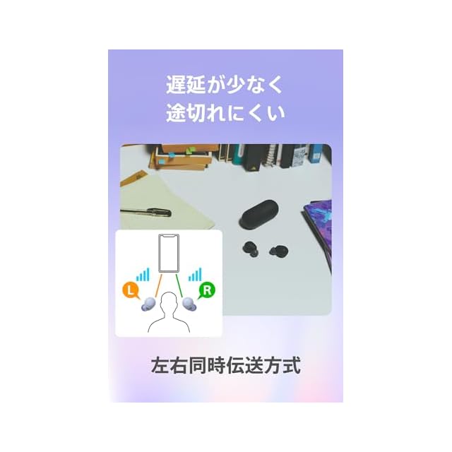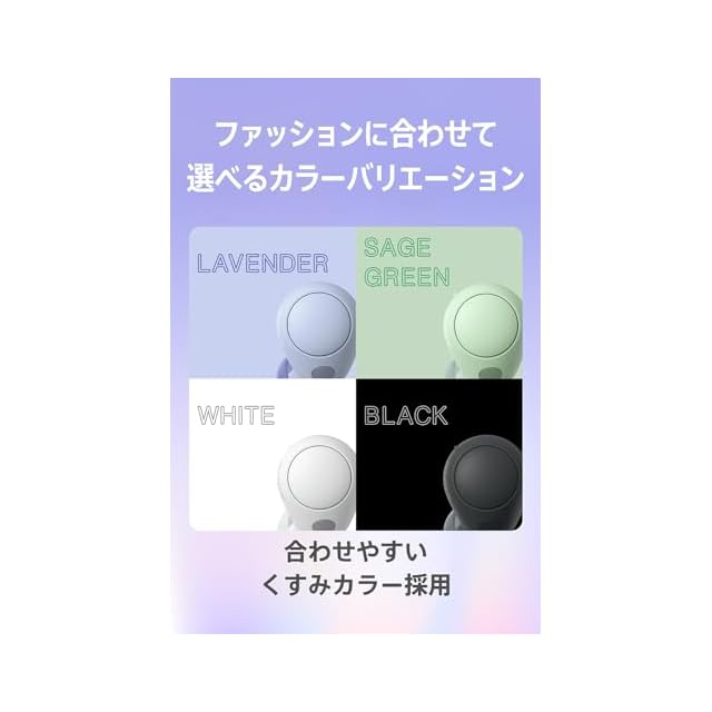 本体及びケースをコンパクトに設計。耳からの出っ張りを抑えることで装着感を高め、スマートな装着姿を実現します。長時間のリスニングでも疲れにくい快適な装着性を実現しています。さらにトレンドのくすみカラーを採用した、ラベンダー、セージグリーンとベーシックなホワイト・ブラックからファッションに合わせてお選びいただけます。けます。