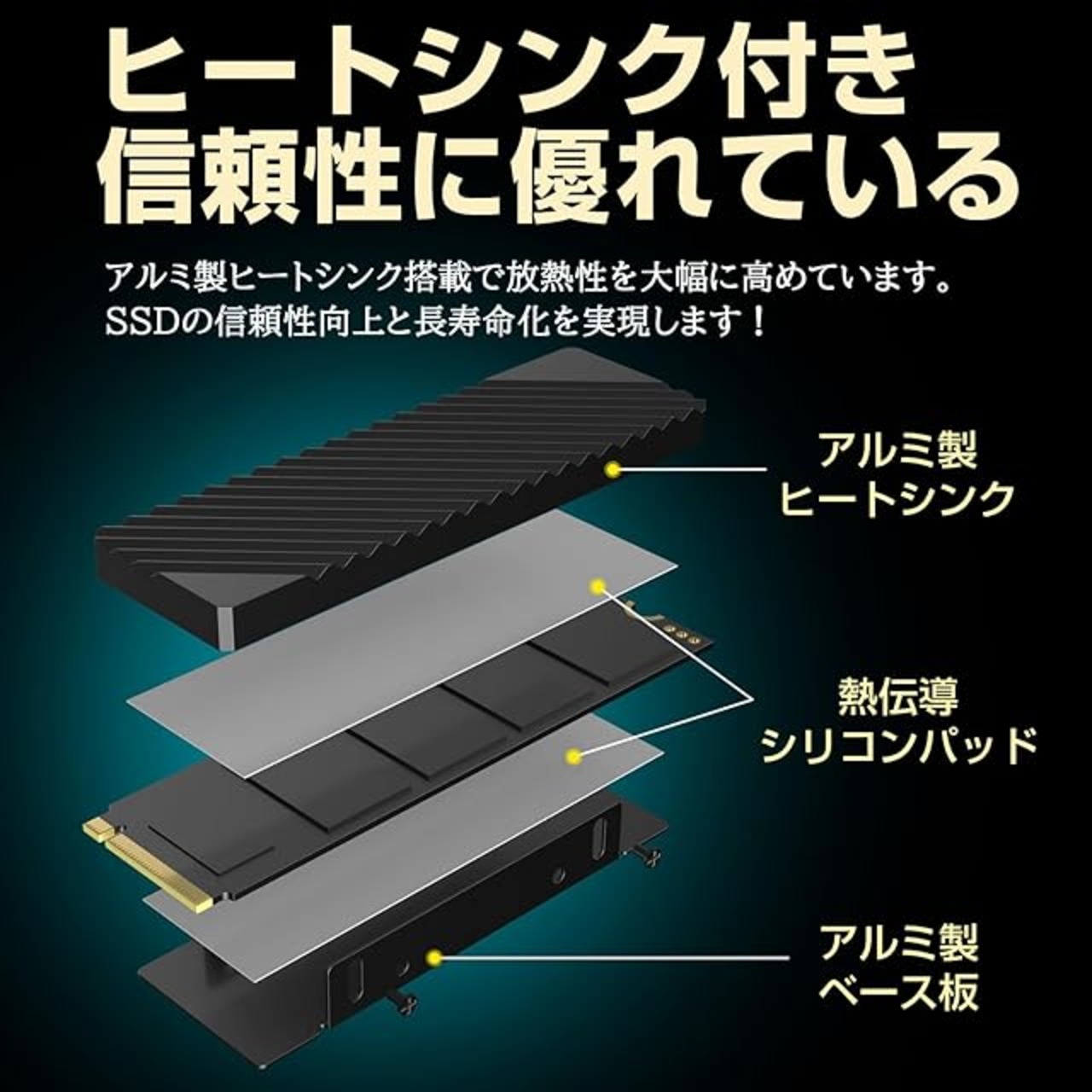 高性能ゲーミングパソコンやPS5/新型PS5向け;アルミ製ヒートシンク搭載で放熱性を大幅に高めています。PS5の限られたスペースでも、効率良く放熱を促し、ゲームソフトの強制終了や転送速度の低下を防ぎます。
