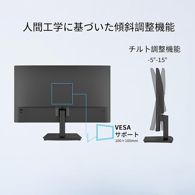 【調節可能なスタンド】チルト調整(-5°-15°(±3°))が可能なスタンドにより、最適な視野角を確保。快適な作業環境を提供します。