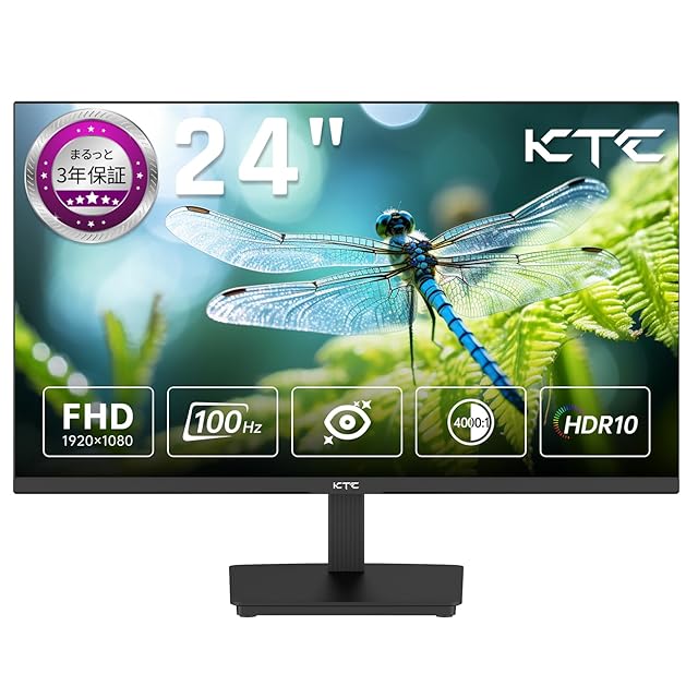 商品名:KTC 24インチ PCモニター フルHD 1080P 100Hzリフレッシュレート 【HDMI 1.4*1/VGA*1/Adaptive Sync/ブルーライト軽減/フリッカーレス】高コントラスト4000:1 |チルト調節|VESA対応|イヤホン端子|オフィス/業務用|3年 H24V27