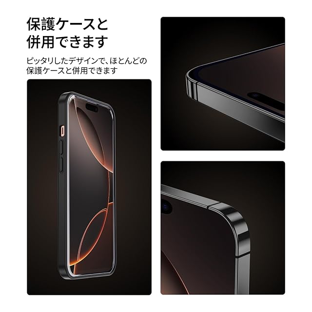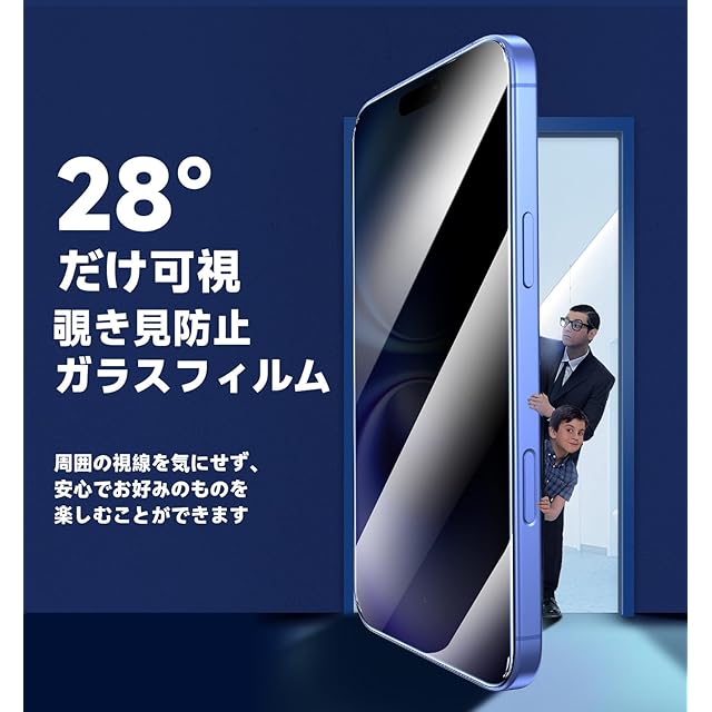 【もう失敗はしない】本製品はiPhone16に対応するプライバシーフィルム2枚セットです。百万以上の欧米ユーザーのフィドバックを集めて日々改善したガイド枠は、3歩だけで保護フィルムを貼り付けます。そのうえ、自動ホコリ取りデザインだけでなく、ガイド枠のスロープデザインで、空気を順序に取り除くことができて、初心者でも気泡レスのまま綺麗に貼れます。