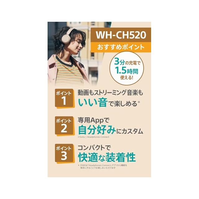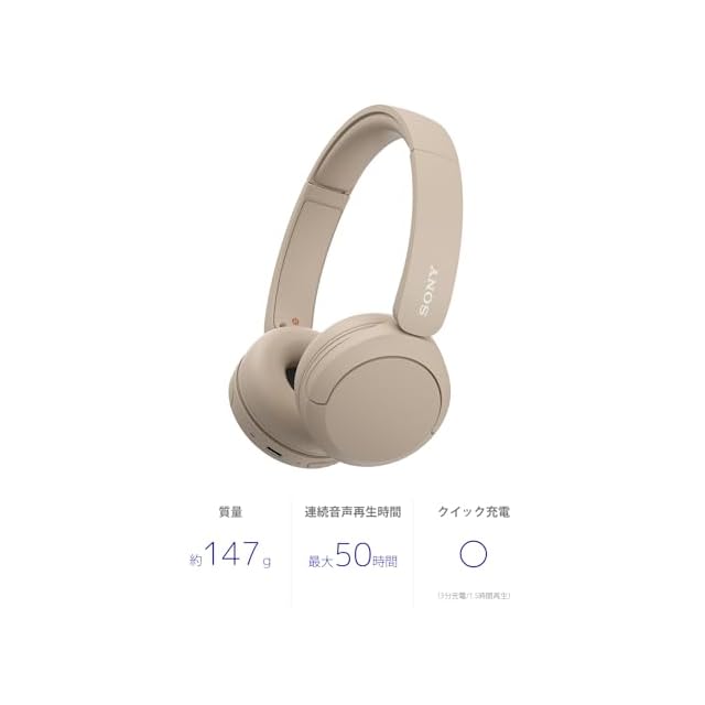 ソニー(SONY) ワイヤレスヘッドホン WH-CH520:Bluetooth対応/軽量設計 約147g/専用アプリ対応により好みの音質にカスタマイズできる「イコライザー」設定対応/ベージュ WH-CH520 C 小 | TREND DESIGN 家電専門店