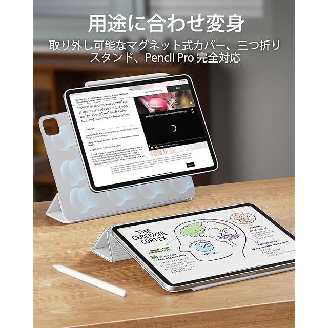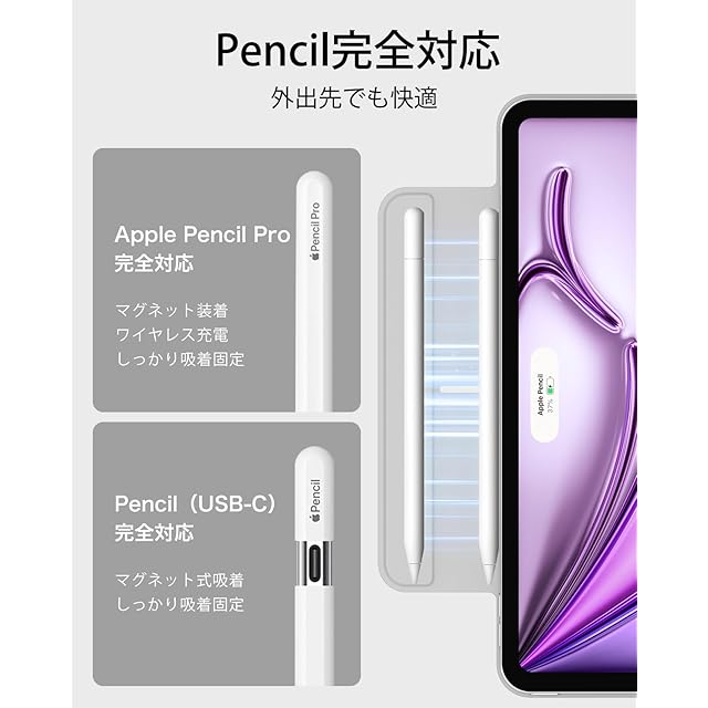 【Pencil Pro&Pencil (USB-C)対応】: Pencil Proへ完全対応かつ、磁気充電用の側面の溝と、Pencilをしっかりと固定するマグネットクラスプを備えています。