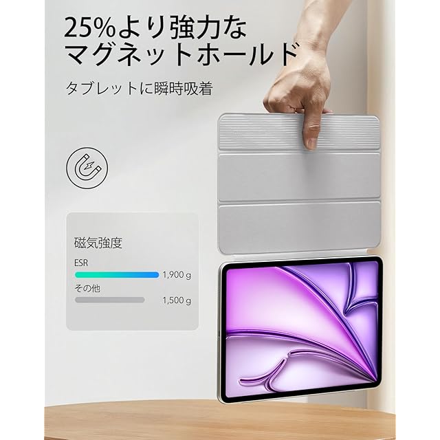 商品名:ESR iPad Air 13インチ ケース (M3/M2、2025/2024) iPad Pro 12.9 専用カバー 第6/5/4世代(2022/2021/2020) 強力マグネット吸着式 スリムな三つ折りスタンドケース Pencil Pro/USB-C対応 自動ウェイク/スリープ 耐久性保護 Reboundシリーズ ホワイト