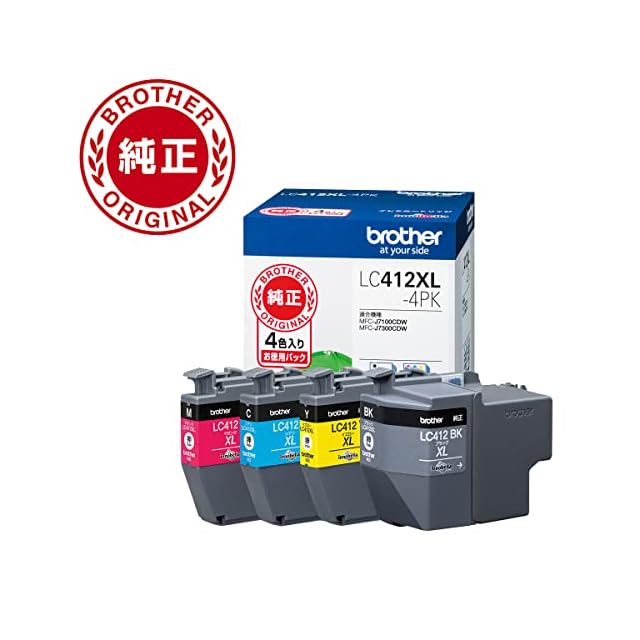 【ブラザー純正】 ブラザー工業(Brother Industries) インクカートリッジ4色パック(大容量)LC412XL-4PK対応型番:MFC-J7300CDW、MFC-J7100CDW他 ブラック 小 | TREND DESIGN 家電専門店