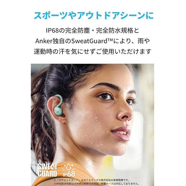 Anker Soundcore Sport X20(Bluetooth 5.3)【完全ワイヤレスイヤホン/耳掛け/カナル型/フック型/アクティブノイズキャンセリング/外音取り込み/音声通話 / IP68防塵防水規格 / 完全防塵・防水/最大48時間音楽再生 / 専用アプリ対応/PSE技術基準適合】ミントグリーン | TREND DESIGN 家電専門店