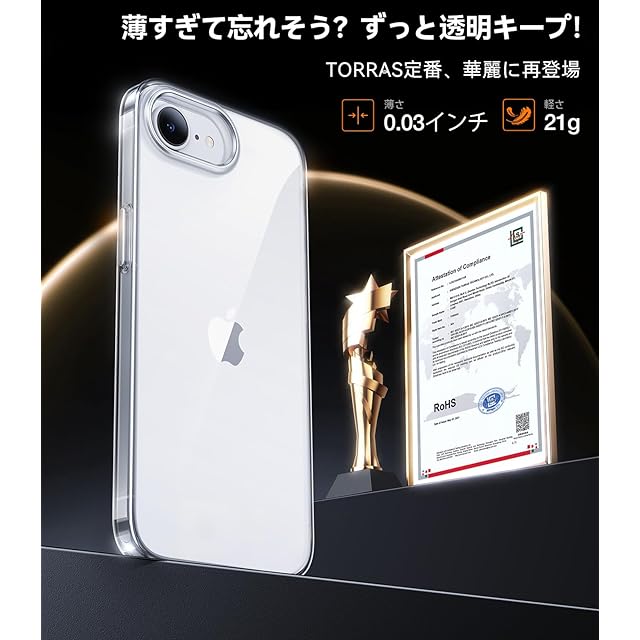 商品名:TORRAS iPhone 16e 用 ケース 【超薄型・耐黄変の奇跡】 透明 薄型 シンプル 日本製PC 擦り傷防止 耐衝撃カバー スマホケース 6.1インチ「OriginFit 」クリア