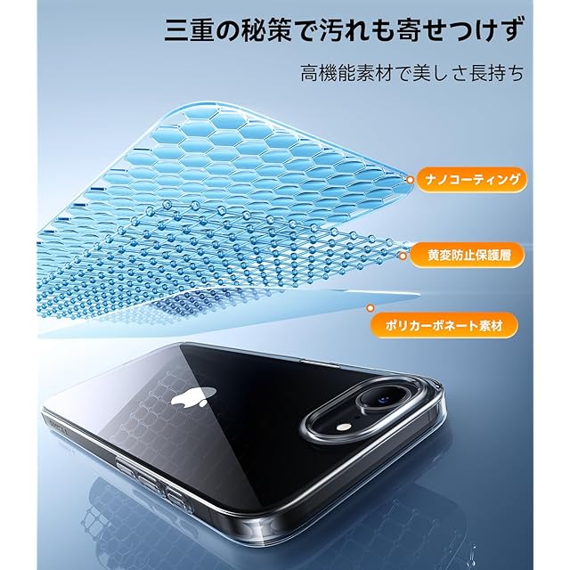 【99%の透明度を誇る】表層にはTORRASが独自に研究開発したナノコーティングを施している。この技術により、iPhone 16e 用 ケース本体は前代未聞の耐黄変能力を備えている。OriginFitの透明度を完全に維持しながら、いつまでもスマホを新品のままの美麗を保つ。