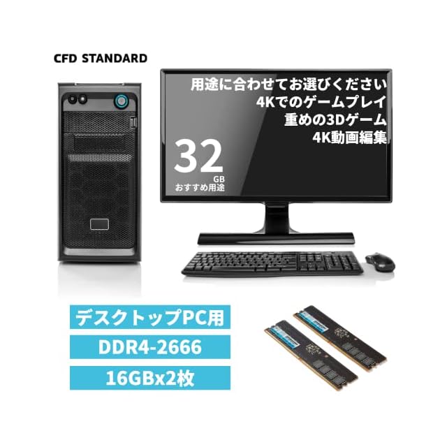 商品名:シー・エフ・デー販売 CFD Standard デスクトップ用 メモリ DDR4 2666 (PC4-21300) 16GB×2枚 288pin DIMM 相性 W4U2666CS-16G