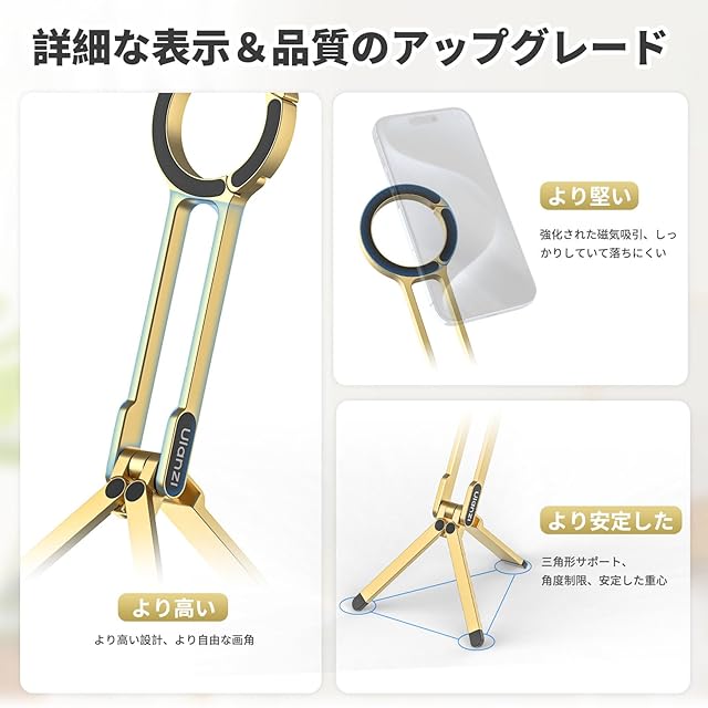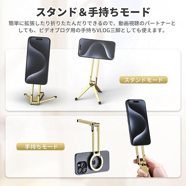 Ulanzi MA30 スマホ三脚 ミニ三脚 全金属製 magsafeに対応 折りたたみ式 持ち運び便利 スタンド&手持ちモード 361度回転 自撮り棒 スマホスタンド 携帯スタンド 安定 軽量 角度調整可能 横置き/縦置き 卓上三脚 セルフィー/生放送/撮影録画/動画鑑賞に最適 金 | TREND DESIGN 家電専門店