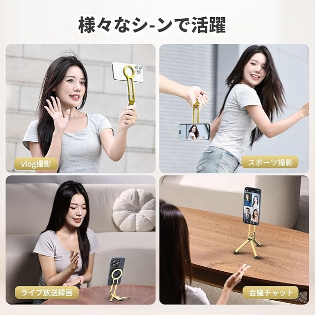 商品名:Ulanzi MA30 スマホ三脚 ミニ三脚 全金属製 magsafeに対応 折りたたみ式 持ち運び便利 スタンド&手持ちモード 361度回転 自撮り棒 スマホスタンド 携帯スタンド 安定 軽量 角度調整可能 横置き/縦置き 卓上三脚 セルフィー/生放送/撮影録画/動画鑑賞に最適 金