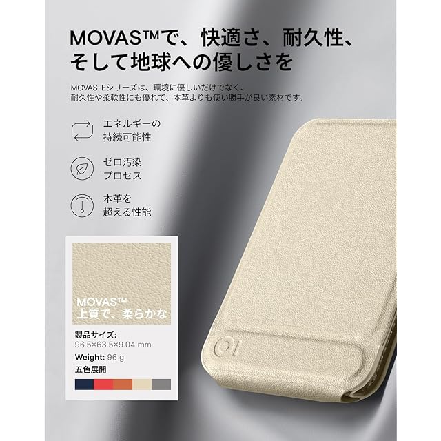 【MOFTならではの質感・独自開発素材】「MOVAS」は、MOFTが独自開発したヴィーガンレザーです。肌に優しく、まるで本革のような、しっとりとしたなめらかな触り心地を実現しました。動物性原料を一切使用せず、DMFも含まない、環境に配慮したサステナブルな素材です。