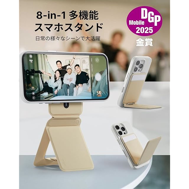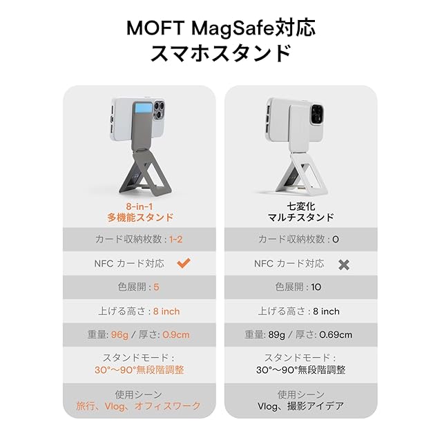 商品名:MOFT【公式直営店】モフト スマホスタンド 8-in-1多機能スタンド カードケース付き MagSafe対応/NFC/Suica/タッチ決済対応|iPhoneシリーズ・全機種対応|強力磁力&アイアンリング付き|MOVAS™素材|薄型・軽量・折りたたみ式|多角度調整・三脚 携帯スタンド|自撮り・動画視聴・ウェブ会議・ドラマ鑑賞・記録撮影・旅行に最適(カード収納)