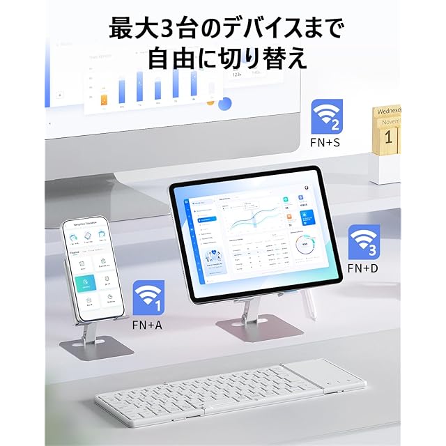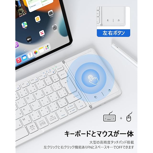 【最新型】Omikamo キーボード bluetooth 折り畳み式 ワイヤレス JIS標準日本語配列 ipad キーボード スマホ マルチペアリング タッチパッド付き iOS/Windows/Android/Mac/Google対応 無線 コンパクト 軽量 薄型 ipad mini パンタグラフ 充電式(白) | TREND DESIGN 家電専門店