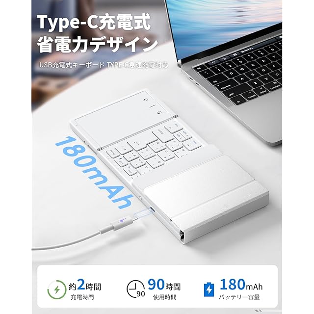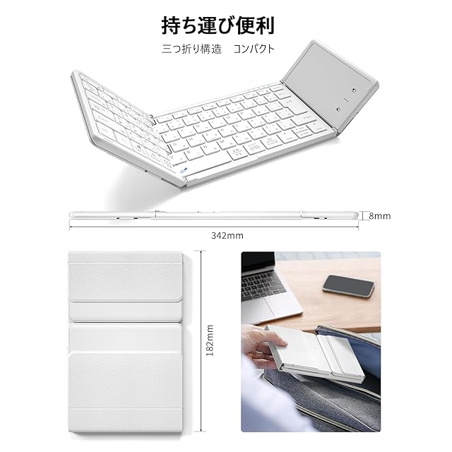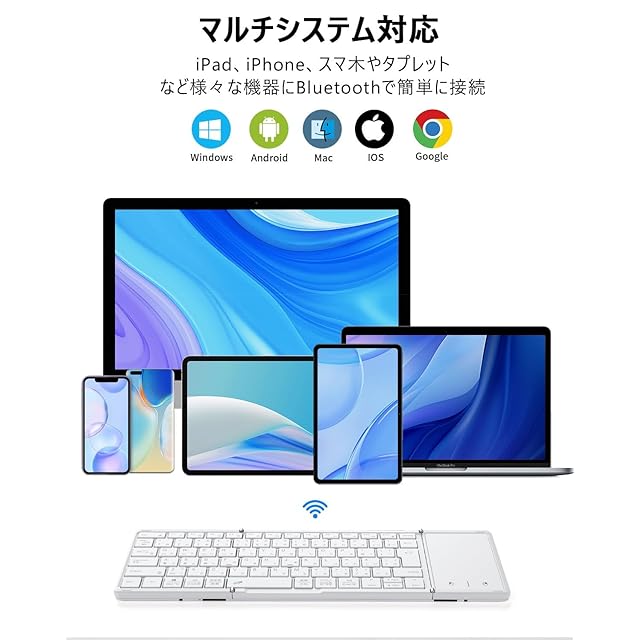 商品名:【最新型】Omikamo キーボード bluetooth 折り畳み式 ワイヤレス JIS標準日本語配列 ipad キーボード スマホ マルチペアリング タッチパッド付き iOS/Windows/Android/Mac/Google対応 無線 コンパクト 軽量 薄型 ipad mini パンタグラフ 充電式(白)
