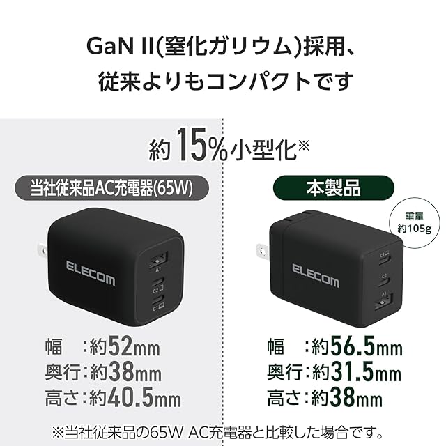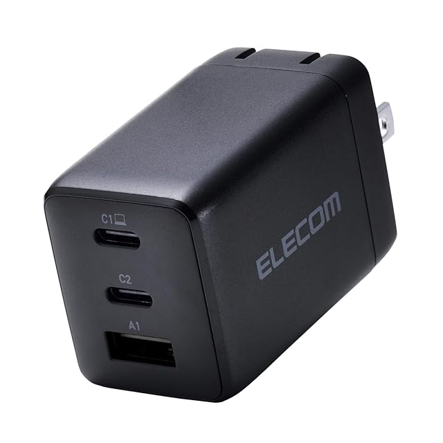 商品名:エレコム 充電器 合計65W 3ポート Type-C USB-A USB PD対応 スイング式プラグ採用 ブラック EC-AC10367BK