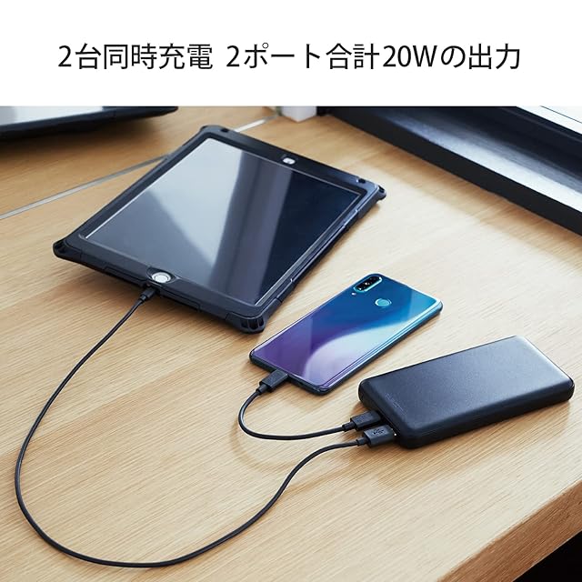 USB Power Delivery 規格に準拠し、20W出力可能。対応機器を超高速充電できる、10000mAhモバイルバッテリーです。