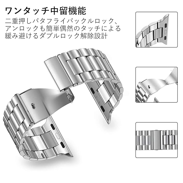 【高品質なステンレス素材】耐腐食性、耐摩耗性、耐酸性の高品質ステンレス素材を採用、耐久性に優れています。また、精密な研磨技術と使いやすくファッショナブルな設計となっており、高級感あふれるApple Watchベルトとなっています。