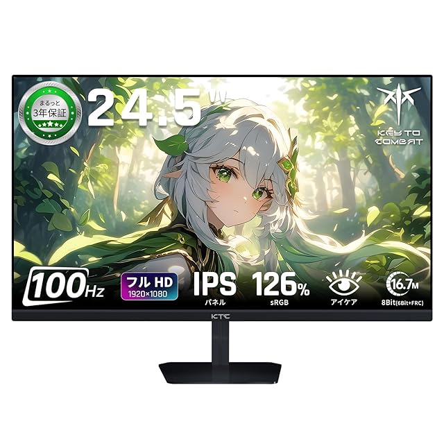 KTC 24.5インチ FHD IPSモニター - 100Hzリフレッシュレート, 非光沢ディスプレイ, ブルーライト軽減, フリッカーレス技術, VESA対応, Adaptive Sync, 1300:1コントラスト比, オフィス用PCモニター, 三年付き - H25B7