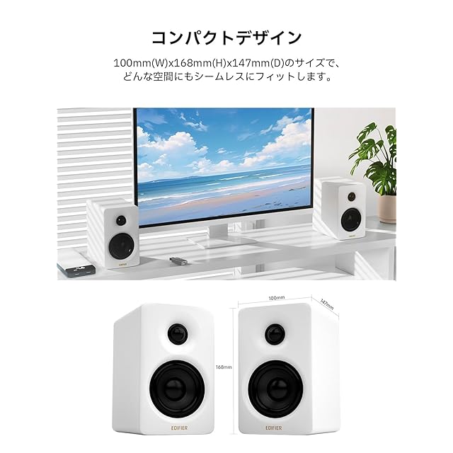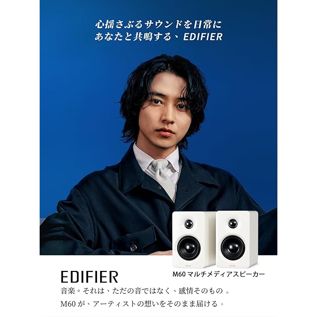 商品名:「VGP2025金賞&コスパ大賞」Edifier M60 マルチメディアスピーカー 66W Bluetooth 5.3 ハイレゾワイヤレス コンパクトなデザイン 専用アプリ スタンド付き USB-C/AUX入力 MDF製 白