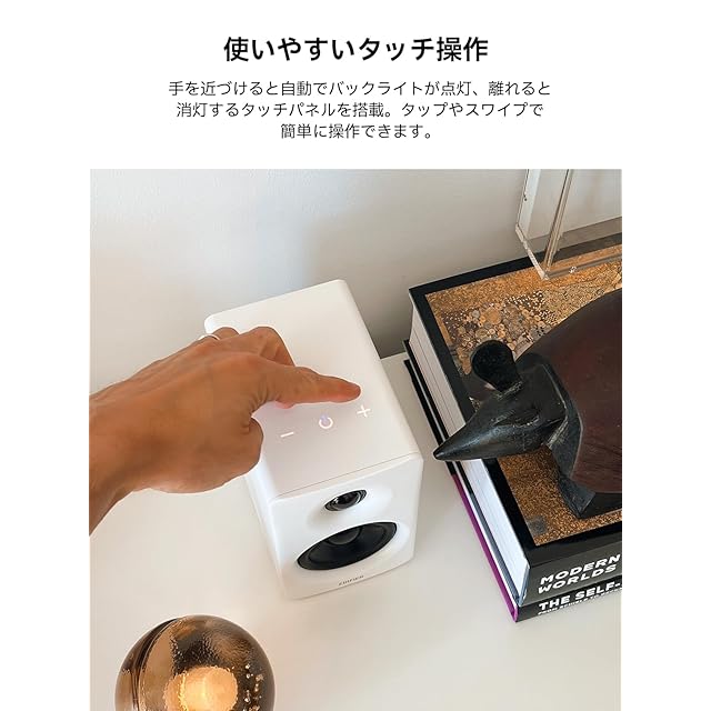 【フレンドリーな操作方法】上部に搭載されたタッチパネルは、自動バックライト機能を備えており、手が近づくと自動的に点灯し、離れると自動的に消灯します。軽くタッチしたりスワイプしたりして簡単にスピーカーを操作できます。