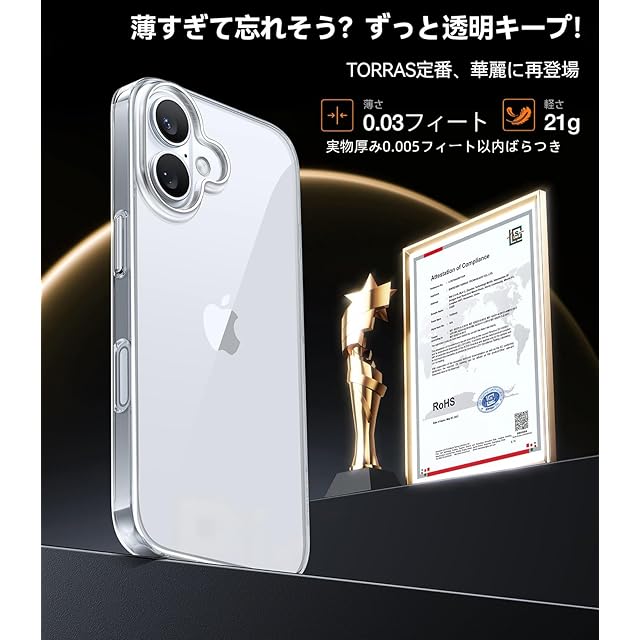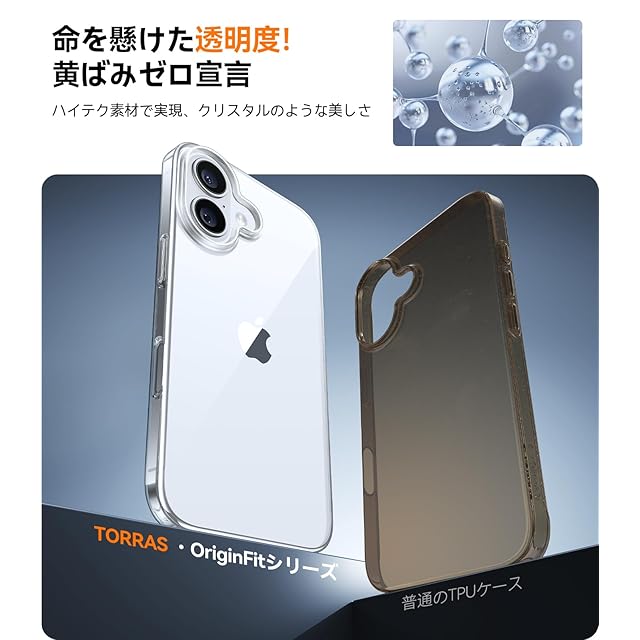 商品名:TORRAS iPhone 16 用 ケース【超薄型・極軽量】 薄型 軽量 シンプル 日本製PC 擦り傷防止 耐衝撃カバー アイフォン16用ケース 6.1インチ「OriginFit 」クリア