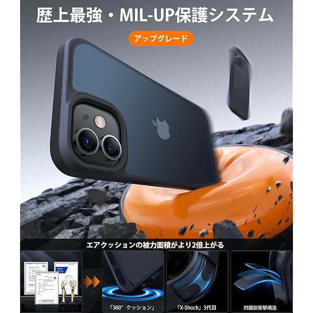 【アップグレード・軍用レベル保護力】堅牢性には徹底的にこだわって開発しているケースが、全面保護システムが年々更新し、高い耐衝撃性を誇り、3Mの高さ、26回コンクリートに落下させても本体は綺麗に無傷!iPhone 12 mini向けのGuardianはスマホを守り抜く万全の備え!※米軍規格認証番号:No.GZIN2005022739PS 「ご注意:本製品には内蔵の磁石リングがないため、MagSafe充電に対応しない可能性があります。」