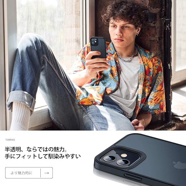 商品名:TORRAS iPhone 12 mini 用 ケース 【衝撃分散構造 耐久性】 耐衝撃 米軍MIL規格取得 マット感 黄ばみなし アイフォン12mini用カバー 5.4インチ マット半透明 ブラック 「Guardian Series」