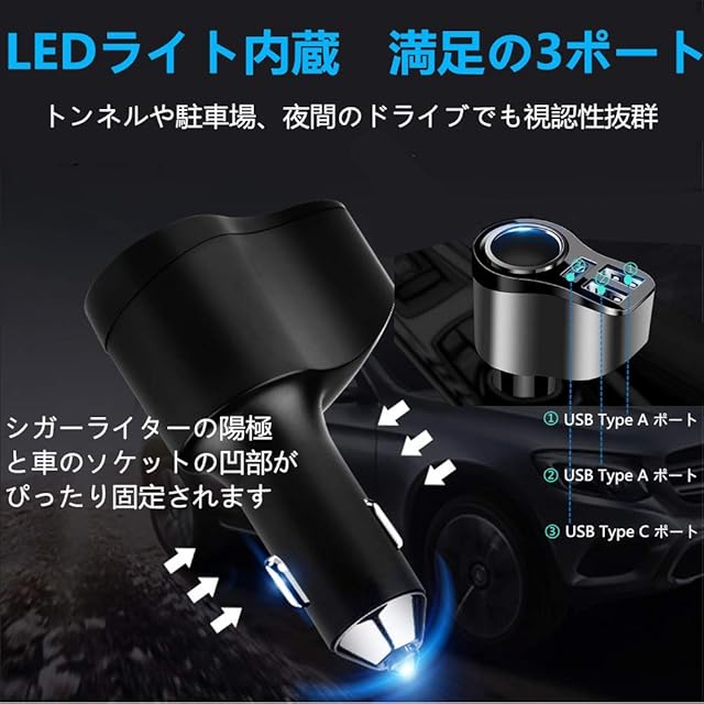 【シガーソケット付き ● 便利性アップ】シガーソケット付きのUSB カーチャージャー(12V/24V車種対応)ですから、元車のシガーソケットを占用しない、シガーソケット口の設備に互換できます。ドライブレコーダー、ポータブル冷蔵庫などの車用な設備に適用できます。ご注意:シガーソケットを使用する時、高出力の電気製品を長時間使用しないでください。(例:電気温水器、電気オーブン、ヘアドライヤー、屋外電源など。)
