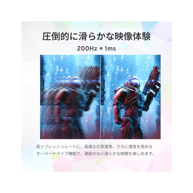 [画面] 23.8インチ / FHD(1920×1080) / Fasr IPSパネル / 200Hz / 1ms(GTG) / sRGB 112% / 非光沢