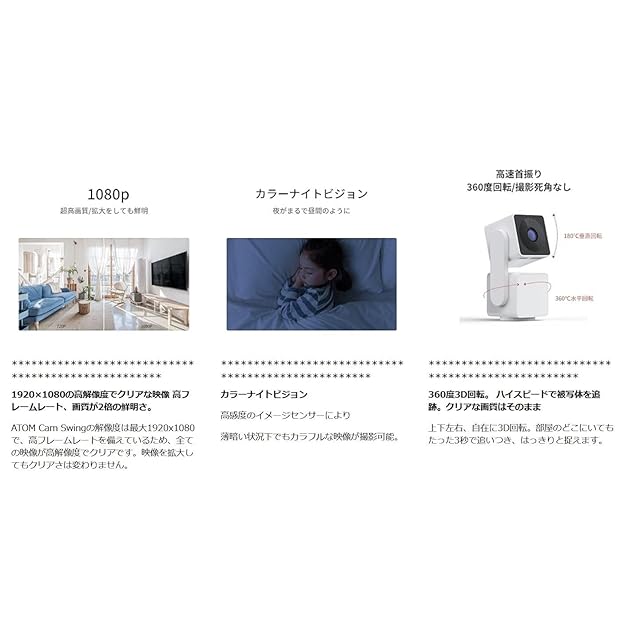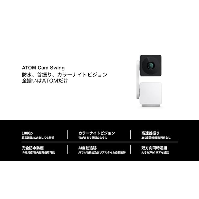 商品名:アトムテック(ATOM tech) 屋内/屋外兼用の防犯カメラ ATOM Cam Swing(アトムカムスイング) 1080PフルHD 360度回転 Alexa対応 見守りカメラ 監視カメラ ネットワークカメラ ペットカメラ/ベビーモニター ACS1