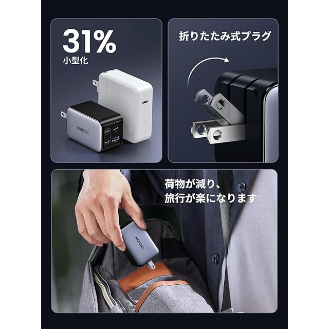 UGREEN Nexode 65W 急速 充電器【4ポート】USB-C×3+USB-A×1 タイプC PD3.0 GaNII 充電器 iPhone 16/ Android/Galaxy/Macbook/iPad/PC/その他USB-C機器対応 PSE(ブラック) | TREND DESIGN 家電専門店