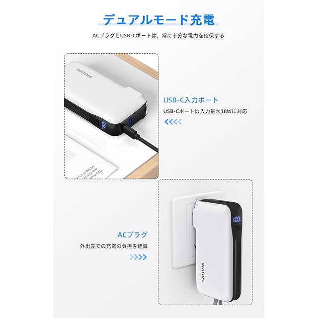 【パッケージ内容&品質】パッケージ内容:モバイルバッテリーx1、AC交換アダプターx3、説明書x1。期は一年間になります。弊社が販売しているPhilips商品はすべて正規品です。何かご不明な点などございましたらお気軽にお問い合わせくださいませ。