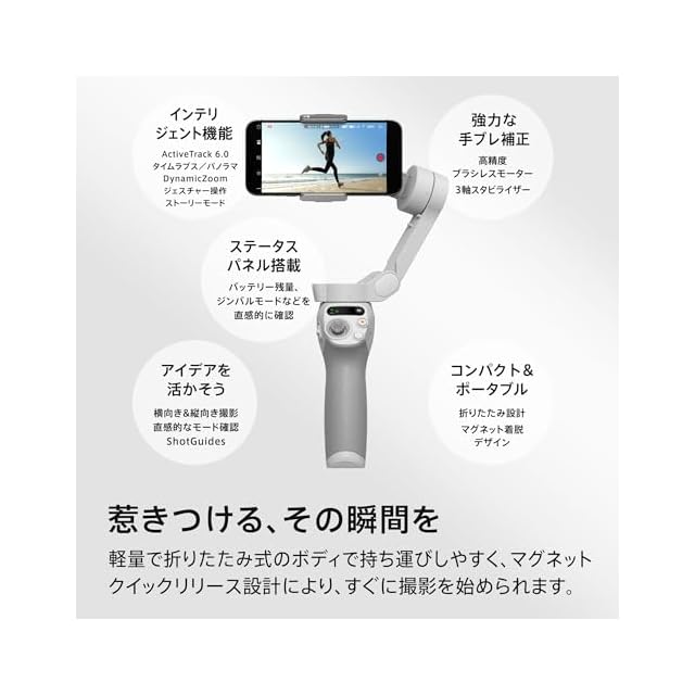 商品名:DJI スマートジンバル Osmo Mobile SE 3軸スマホジンバル ShotGuides機能搭載 Android&iPhone用ジンバル ActiveTrack 6.0搭載 Watchで遠隔操作 スマホ用ジンバル Vlogスタビライザー 【国内正規品】
