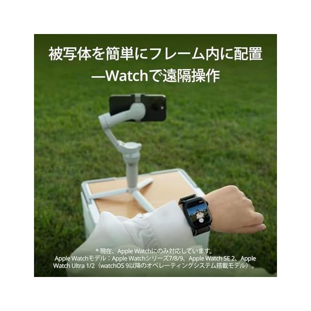 【Watchで遠隔操作】-Apple WatchにDJI Mimoアプリをインストールすれば、Osmo Mobile SEのスマート送信機として使用できます。 カメラ映像のリモート表示、ジンバル角度の調整、写真の撮影、動画の録画をすべてWatchから行うことができます。