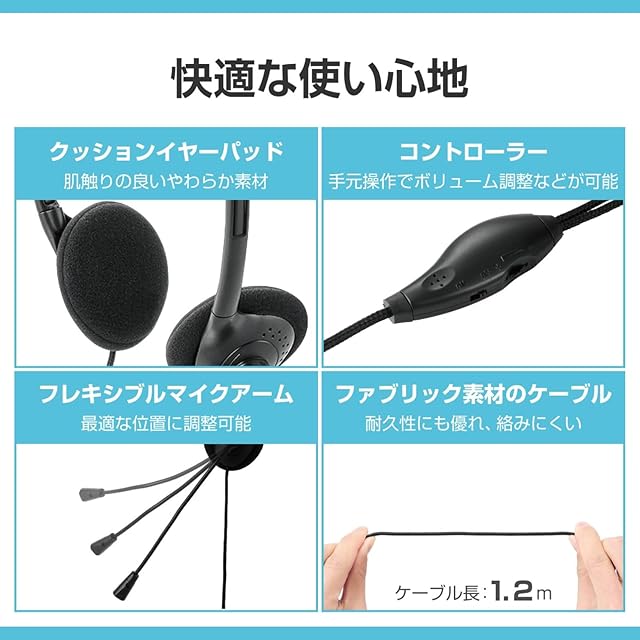 肌触りの良いやわらかなクッションイヤーパッドを採用し、安定したフィット感を実現しています。