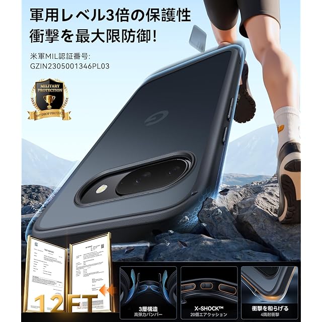【2025アップグレード・軍用レベル保護力】堅牢性には徹底的にこだわって開発しているケースが、特許全面保護システムが年々更新し、高い耐衝撃性を誇り、3Mの高さ、26回コンクリートに落下させても本体は綺麗に無傷!Google Pixel 9a向けのGuardianはスマホを守り抜く万全の備え! 「米軍規格認証番号:No.GZIN2005022739PS」