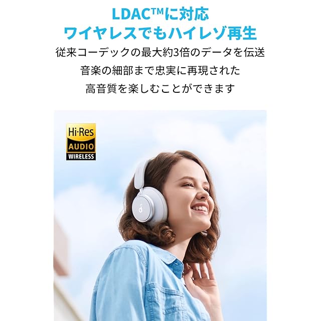 LDACに対応、ワイヤレスでもハイレゾ再生:従来のコーデックの最大約3倍のデータを伝送。音楽の細部まで忠実に再現された高音質を楽しむことができます。