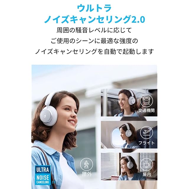 ウルトラノイズキャンセリング 2.0:周囲の騒音レベルに応じてご使用のシーンに最適な強度のノイズキャンセリングを自動で起動します。