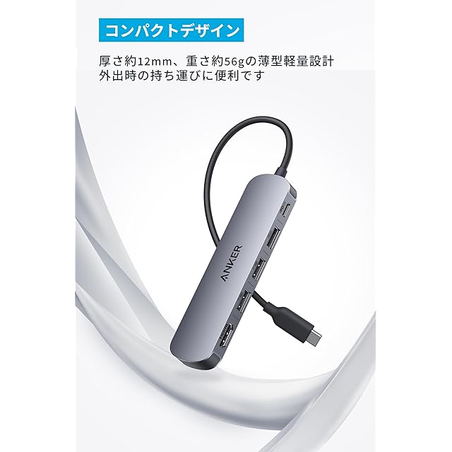 Anker USB-C ハブ (5-in-1, 4K, HDMI) グレー