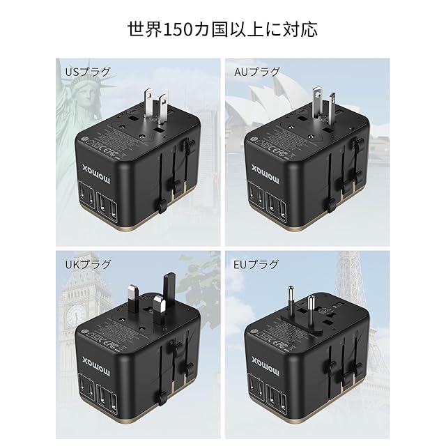 【70W 急速充電】MOMAX 変換プラグ PD 70W GaN 急速充電 海外旅行用電源変換 6台同時充電 3*USB-C PD & 2*USB-A QC &1*ACコンセント 海外用コンセント C/BF/O/Aタイプ マルチ変換プラグ 全世界対応 ヨーロッパ/韓国/イギリス/アメリカ/オーストラリアなどの国 便利グッズ パソコンに対応 | TREND DESIGN 家電専門店