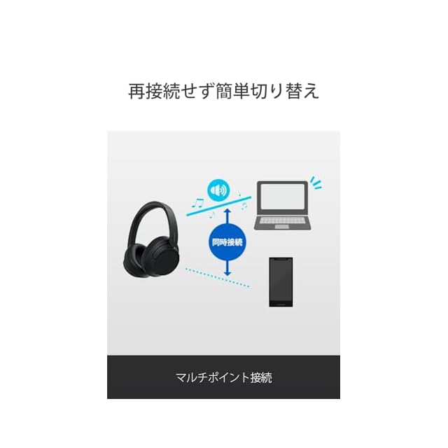 2台の機器と同時接続し、それぞれで通話も音楽も受信できるマルチポイント機能に対応。ノイズキャンセリングON時で最長35時間(*)、OFF時で最長50時間(*)音楽再生可能なロングバッテリーライフ、さらには3分充電で約1時間再生可能なクイック充電(*)にも対応しています。 * コーデックはAAC。DSEE/イコライザーの搭載モデルはOFF設定時、またその他機能は全て初期設定時