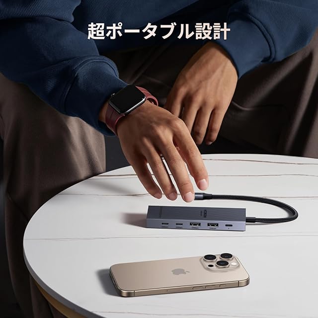 【強力な 100W 電力供給】Type-C ポート経由の最大 100W USB C パススルー充電をサポートし、ノートパソコンに常に電力を供給します。スクリーンキャストやファイル転送のデモンストレーションを行うときは、画像やデータの損失を防ぐため、PD 充電器を抜き差ししないでください。