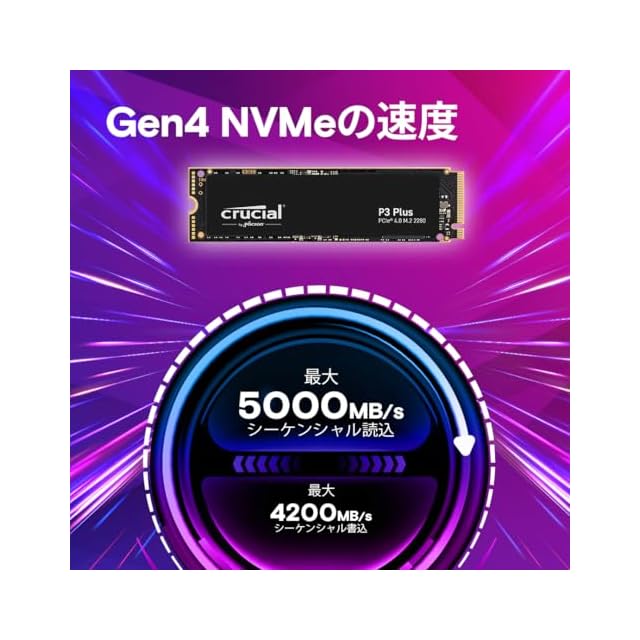 ✅[パワフルなパフォーマンス] お使いの PC を必要な価格で高速な Gen4 パフォーマンスにアップグレードします。Crucial P3 Plus NVMe SSD は、ロード時間とデータ転送速度が SATA 5の 8.9 倍 、最速の Gen3 SSD より 43% 高速です。