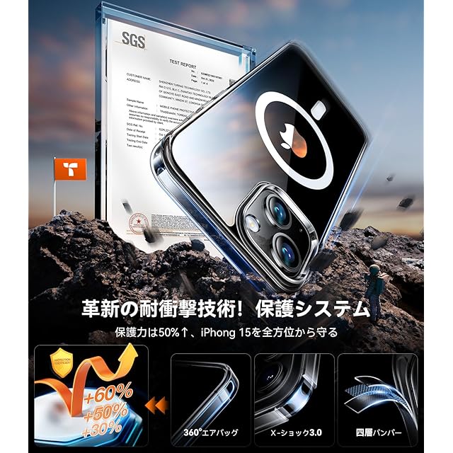 【耐衝撃性抜群・米国MIL規格取得】一見割れそうなクリアで惑わられるな!見た目と反した耐衝撃性にあなたは驚嘆するかも?!米国防総省制定米軍MIL規格に圧勝、2.5Mの高さから落としても、iPhone 15本体は驚きに綺麗な無傷!TORRAS三大耐衝撃性特許「360°エアバッグ」「X-ショック3.0」「四層バンパー」を搭載することでスマホにフル装備!360°あなたのアイフォン15 全方位守り抜きます。 対応機種:iPhone 15用