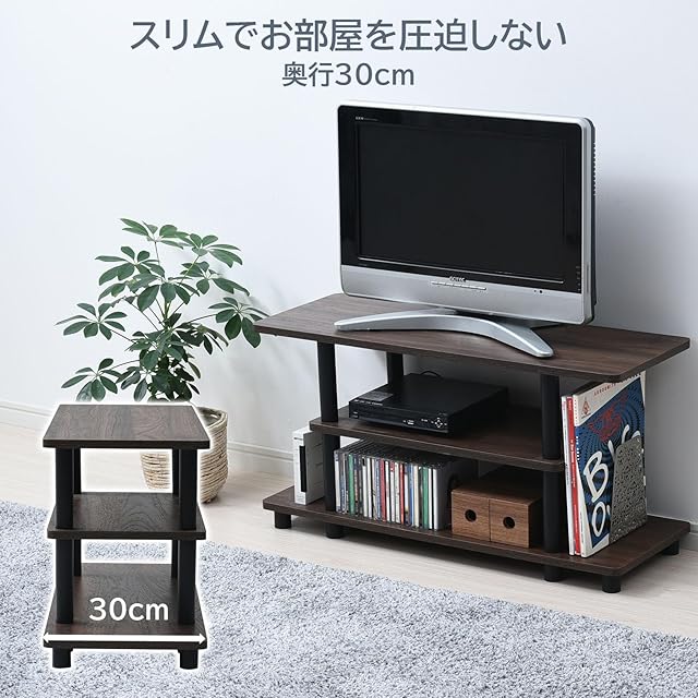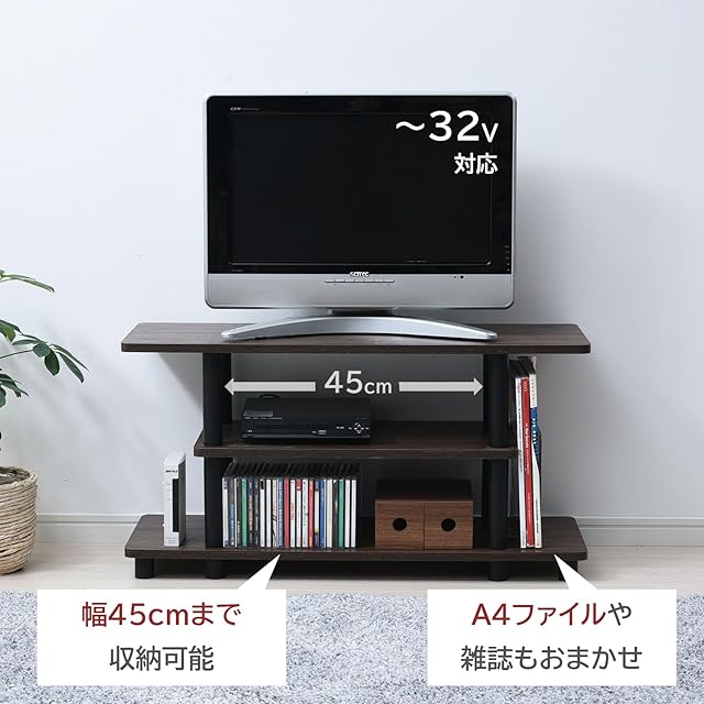 山善(YAMAZEN) テレビ台 32型対応 幅80×奥行30×高さ41.5cm A4対応 かんたん組立 工具不要 収納棚 コンパクト コロンビアウォルナット/ブラック RYWTVE-8030(CWL/BK) | TREND DESIGN 家電専門店