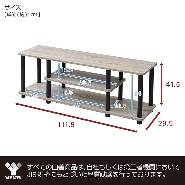山善(YAMAZEN) テレビ台 43型対応 幅111.5×奥行29.5×高さ41.5cm A4対応 かんたん組立 工具不要 収納棚 オーク/ブラック YWTV-1130(OAK3/BK) | TREND DESIGN 家電専門店