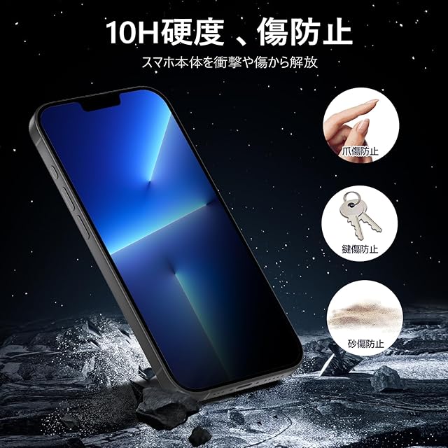 【10H硬度・高品質素材】 MINIKAのいPhone13 Pro ガラスフィルム。10H硬度ガラスを採用し、ハードコーティング技術により外部からの衝撃を吸収し、画面へのダメージを可能な限り抑えます、スクラッチ防止。【製品の特徴】 全面保護/気泡なし/耐衝撃/剥がれない/綺麗/割れない。