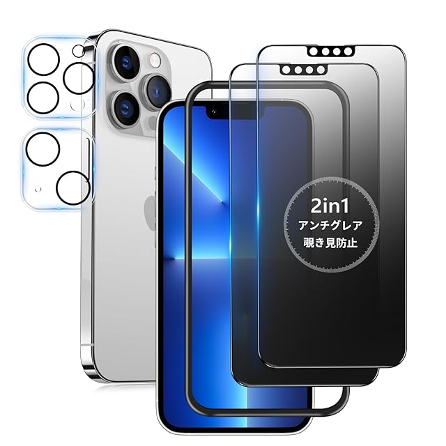 商品名:【覗き見防止 + アンチグレア / 2枚セット】 iPhone 13 ガラスフィルム 覗き見 さらさら いPhone13Pro 保護フィルム サラサラ アイフォン13プロ 覗き見防止フィルム 指紋防止 iPhone13/13Pro カメラフィルム 付き