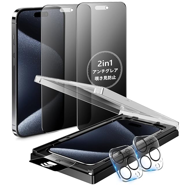 MINIKA iPhone 15 Pro Max ガラスフィルム 覗き見防止 + アンチグレア 2in1 いPhone15Pro max フィルム のぞき見防止 さらさら アイフォン15Promax 保護フィルム プライバシー 横から見えない 指紋防止 一体式ガイド枠付き 超簡単貼り付け 自動位置決め iPhone15プロマックス カメラフィルム 付き「2枚セット」 | TREND DESIGN 家電専門店